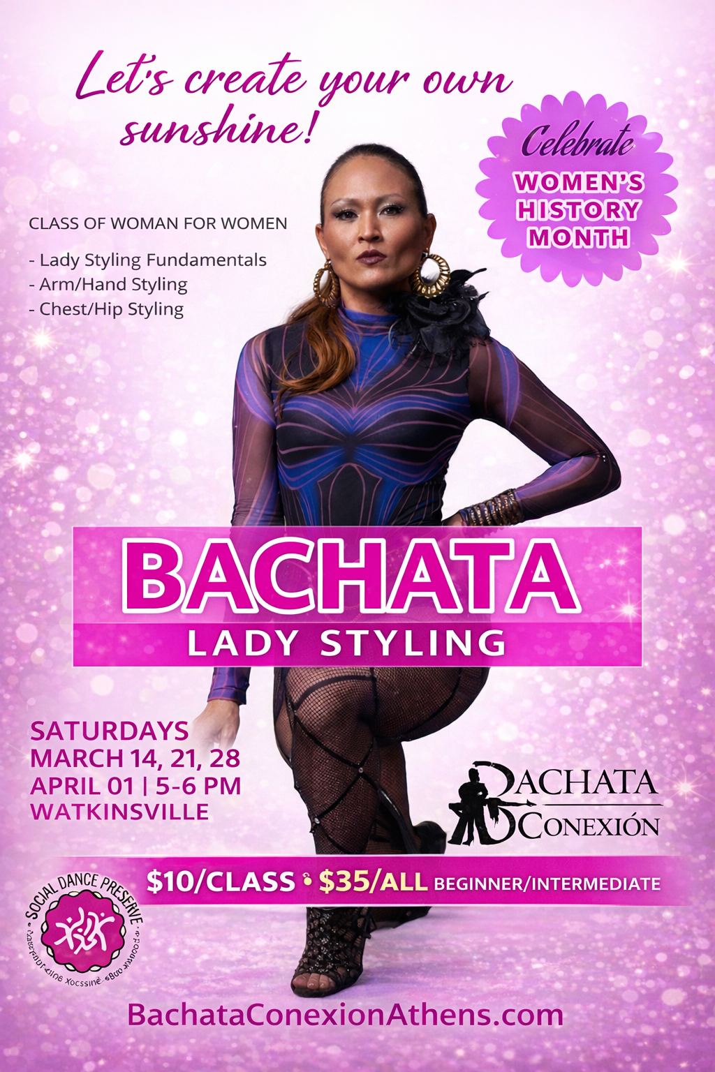 A four-week series class that was designed to enhance woman’ s confidence in dancing bachata. Each week lesson will provide you experiences to learn and practice your fundamental basic, body movement and isolation, and adding some sensual, feminine styling in your bachata dance.